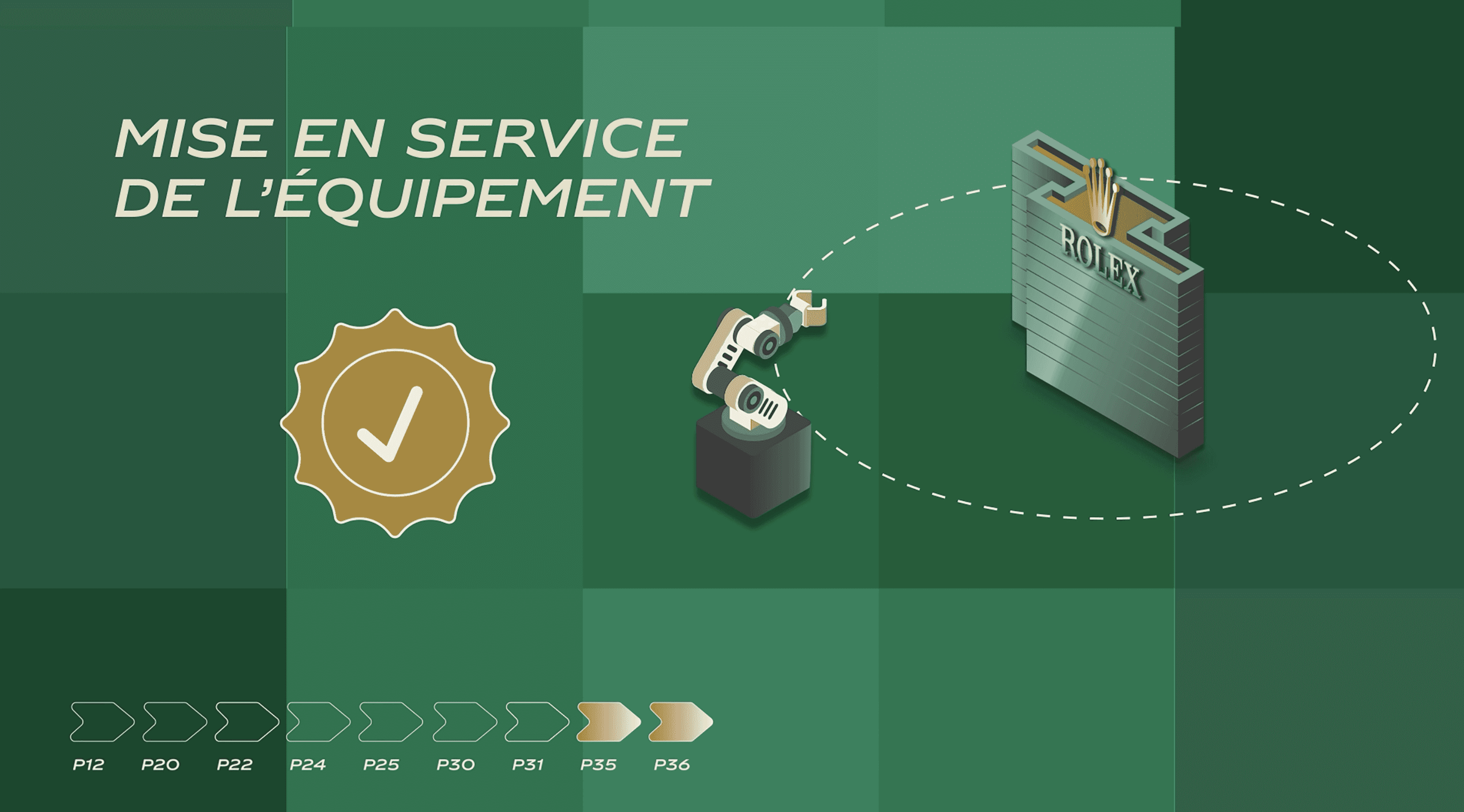 A motion-driven presentation illustrating Rolex’s internal workflow for the implementation of new equipment.